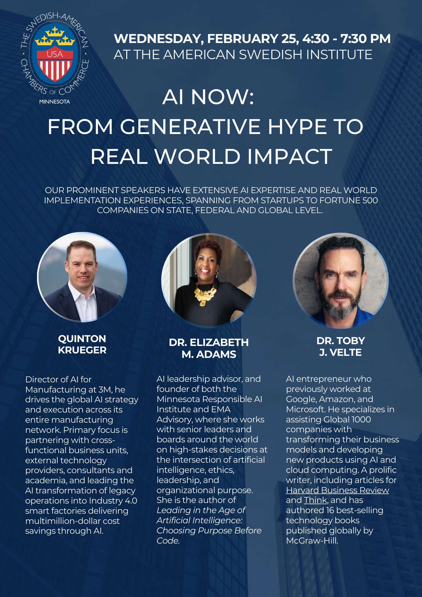 SACC Minnesota connects a diverse Swedish-American business network across the Upper Midwest and Sweden, bringing together companies, professionals, and individuals to share insights and experiences from local and global perspectives.